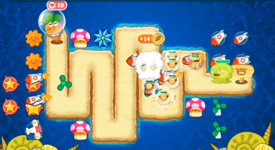掌握一个小技巧可以进一步提升输出效率。在游戏开始、导弹发出后,可以尝试立刻暂停,等待1到3秒再继续游戏,这样有时能加快炮塔的攻击频率调节。最根本的还是依靠开局构建的完美阵型,通过冰冻塔的强力减速将怪物群牢牢锁住,再由密集的火箭和飞机火力网将其彻底摧毁。只要布局得当,这看似困难的一关反而可以轻松愉快地通过并获得金萝卜。